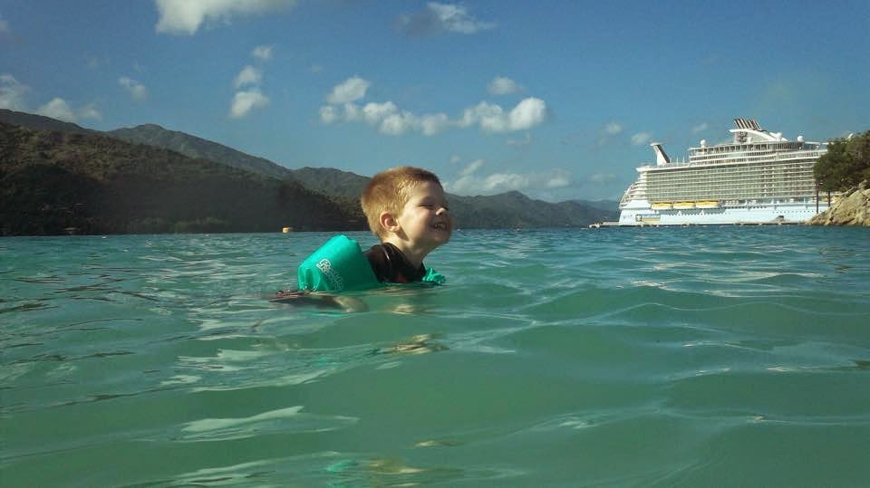 We went on a cruise to Mexico, Jamaica, and Haiti. We spent a day with Nana and Grandpa before and after the cruise now that they live so close to the port. On the boat you ate a lot of ice cream and bacon. You were obsessed with the carousal and wanted to ride every animal every day. The pool and beach was also a huge hit. The character meet and greet were not a hit, but no surprise there.